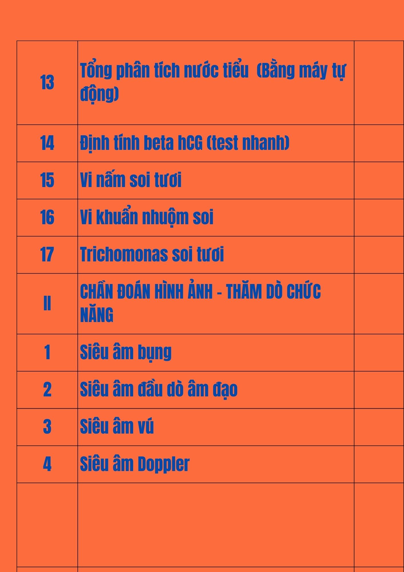 Danh mục kỹ thuật Khoa Xét nghiệm - Chẩn đoán hình ảnh - Thăm dò chức năng.